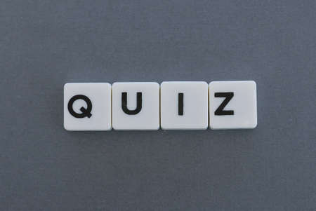 Quiz word made of square letter word on grey background.