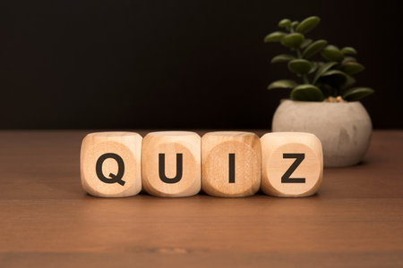 Wooden cubes with QUIZ word representing game, learning, education, and entertainment concept