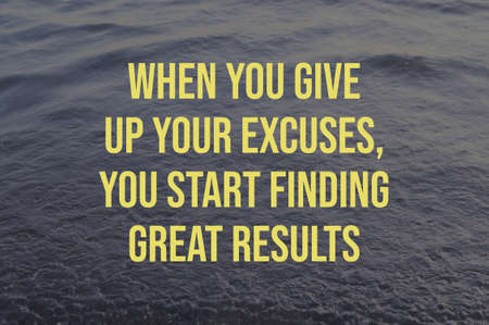 Motivational quote with text WHEN YOU GIVE UP YOUR EXCUSES, YOU START FINDING GREAT RESULTS