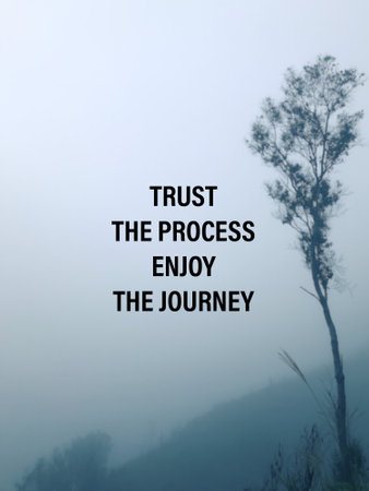 Motivational and inspirational wording. Trust the process and enjoy the journey written on blurred vintage styled background.