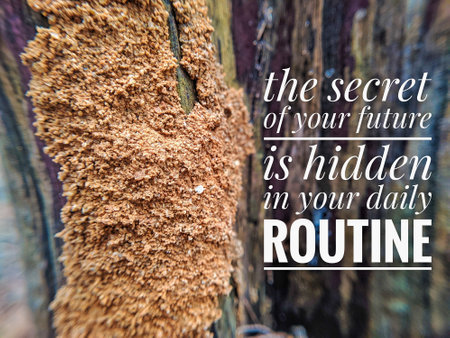 the words the secret of your future is hidden in your daily routine with a blurred natural background. motivational quote concept