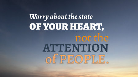 A beautiful sunrise backdrop features a quote focusing on inner spirituality. Worry about your heart, not others' attention. This message urges personal reflection, moral sincerity, internal focus.