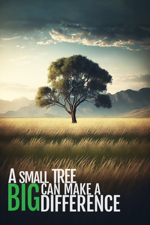 A small tree can make a big difference. Ecological and Environmental conservation. Generative AI vertical illustration