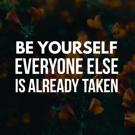 Motivational quote on blurred palm trees and tropical beach - You just have to be yourself and go full with confidence and be courageous.