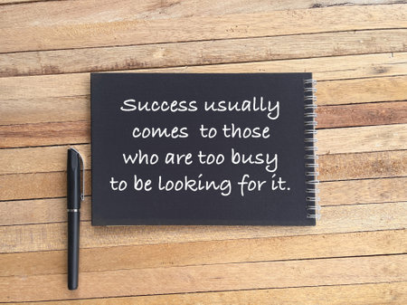 Motivational and inspirational words. Success usually comes to those who are too busy to be looking for it written on a pad.