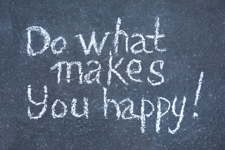 Phrase Do What Makes You Happy with exclamation mark written on asphalt, top view