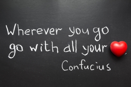 famous Confucius quote Wherever you go, go with all your heart handwritten on blackboard