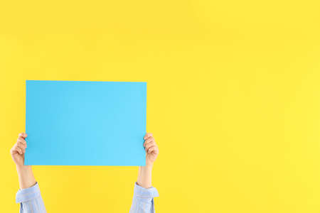 Colored cardboards background blue yellow tone. Copy space. Horizontal