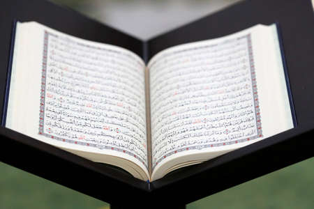 Open holy book of Muslims on stand