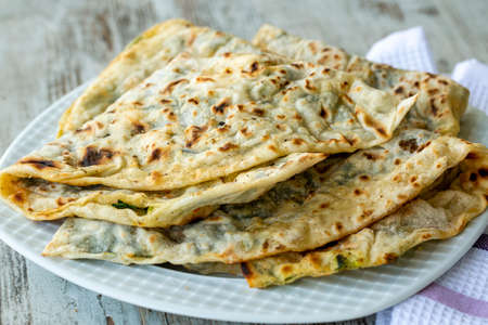 Turkish pancakes with herbs and cheese; Turkish name is hair pastry ( Pancake )