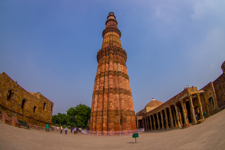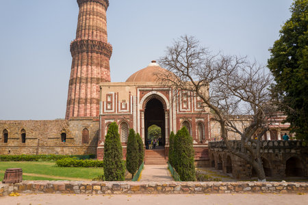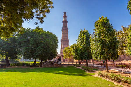 DELHI, INDIA - JULY 20, 2015: Qutub Minar, one of heritage site, built in the early 13th century located on south of Delhi, India