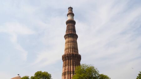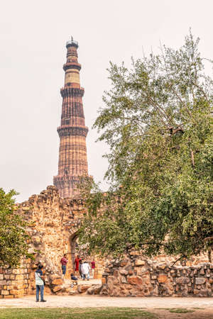 Delhi, India - October 28, 2017: Qutub Minar - the tallest brick minaret in the world