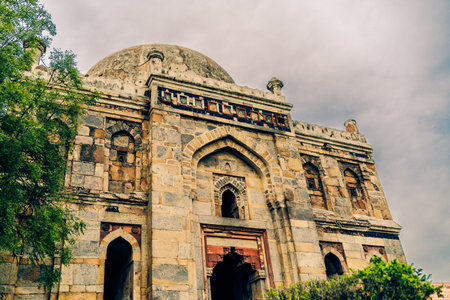 A beautiful shot of the Lodhi Garden in Delhi India under a cloudy sky