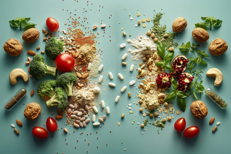 Supplements Vs. Nutrient-Rich Foods A Visual Depiction Of Health And Wellness Choices.