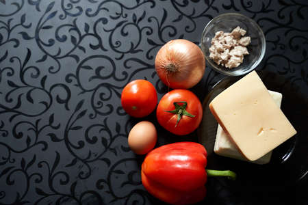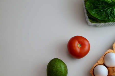 Ingredients for cooking on the kitchen table, top view. Preparation of dishes. The concept of a healthy food. Different vegetables.