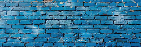 Vintage 1890s brick wall painted blue long ago leaving a grungy blue patina
