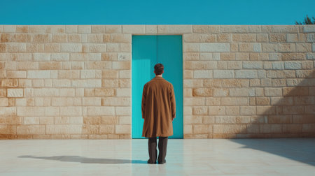 Tinted turquoise construction background. The wall of the house is made of concrete blocks. The seams between them form a pattern similar to brickwork. Light wallpaper or backdrop
