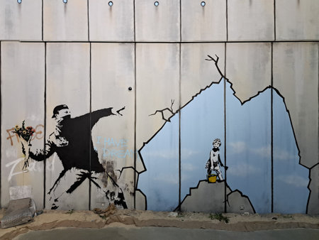 Bordeaux, France - 09 02 2024: Musee Banksy World Of Banksy in Paris with Flower Thrower