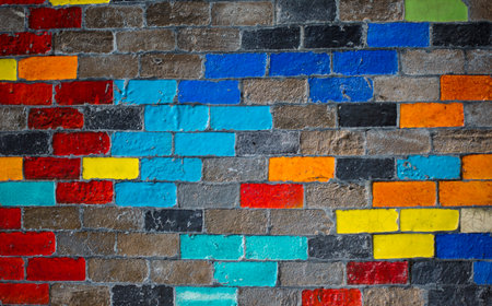 Colorful graffiti on a brick wall background, street art style, vibrant spray paint, high contrast and texture, urban youth culture feel, creative stock image