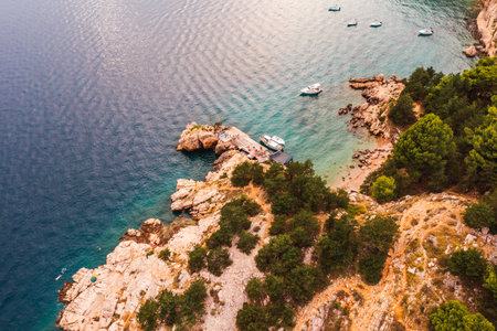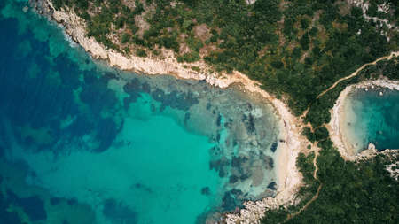 Aerial view on the beach and azure sea. Beach and sea from air. Place for resting. Summer seascape from drone. Croatia landscape. Travel - image