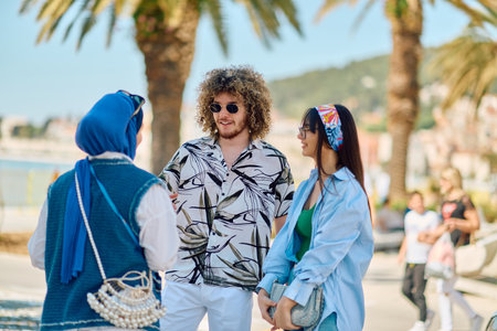 Coastal Conversations: Group of Tourists Planning Their Mediterranean Adventure