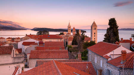 Rab, Rab Island, Croatia. Cityscape image of iconic village Rab, Croatia located on Rab Island at sunset.