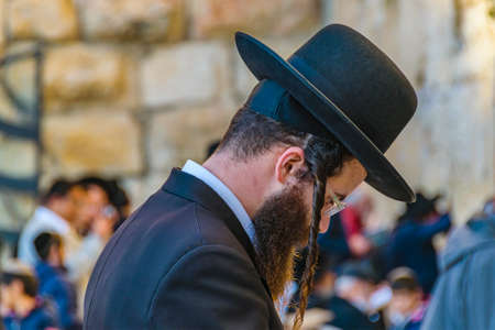 JERUSALEM, ISRAEL, DECEMBER - 2019 - Men praying at famous wailing wall, old jerusalem city