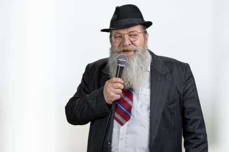 Portrait of senior orthodox jewish man. Purim, festival, holiday, celebration, judaism, religion, human emotions concept.