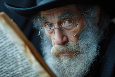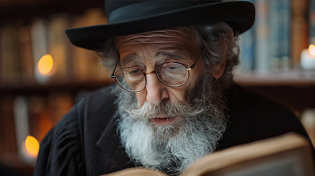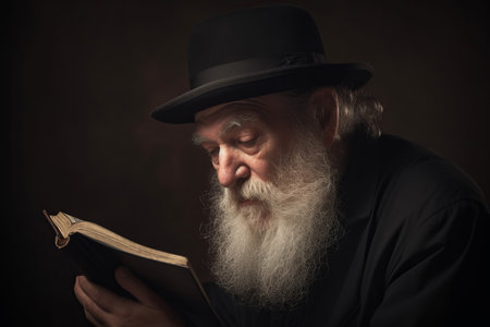 Jewish man reading book portrait. Leader male culture adult read. Generate Ai