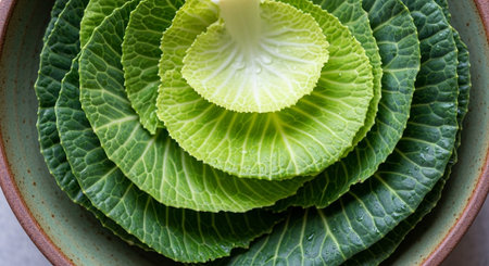 Creative shot of savoy cabbage on green background. healthy vegan food. top view