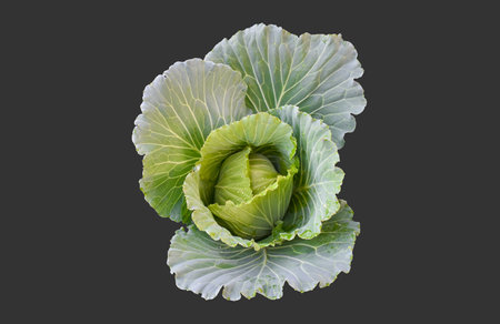 Vegetable concept. Fresh green savoy cabbages isolated on white background. Top view, copy space.