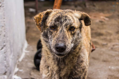 A sad homeless dog on the waterfront of Theodosius. Crimea, Ukraine. November 2011