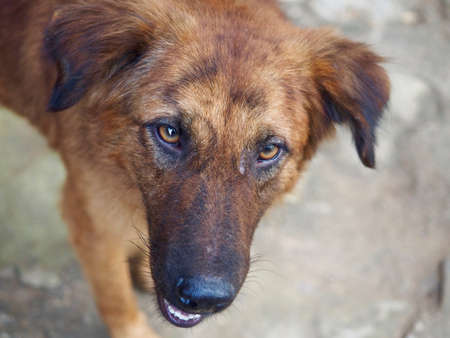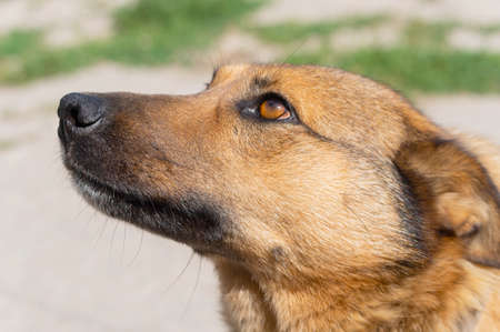Portrait of a beautiful mixed breed dog in the park. Selective focus.