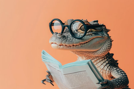 An AI generated illustration of a crocodile wearing glasses and reading a newspaper