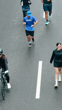 Jakarta, Indonesia - Februari 1, 2026: People running and jogging during Car Free Day event at Sudirman street, showing healthy lifestyle, urban fitness activity, and active commun