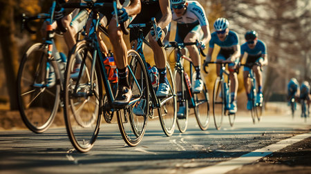 Group of athlete peoples in cycling competition outdoor. AI Generated.