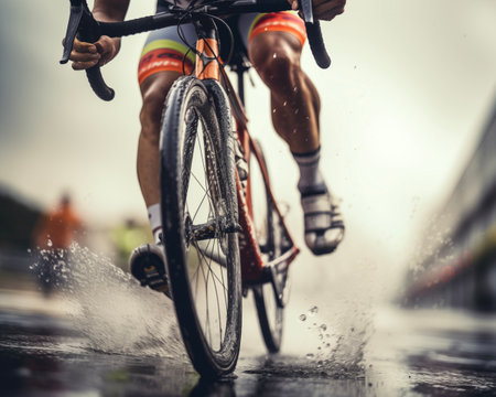 A cyclist's legs spin the pedals. Generative AI