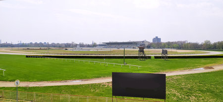 Modern horse race track preparing for race day