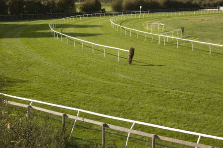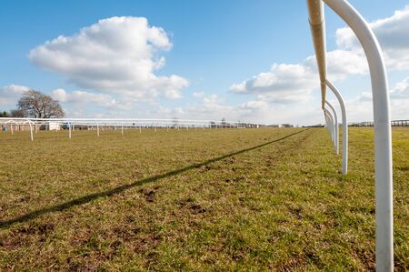 Low level view along an empty horse racing course on a bright and sunny day