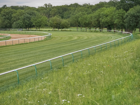 Horse racetrack in Magdeburg, Germany. Landscape in summer sunny day