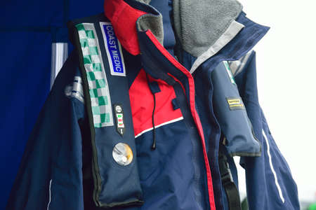 NEW YORK - JULY 13, 2019: Driver's racing helmet on display during 2019 New York City E-Prix at Red Hook in Brooklyn