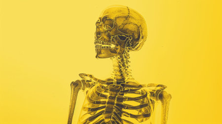 An x-ray image of an adult human skeleton, showing the bones and structure of the body, X-ray film of a human's vertebral column in 3D, AI Generated