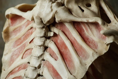 Anatomical Model Showing Human Musculoskeletal System with Focus on Spine and Back Muscles for Educational and Medical Purposes