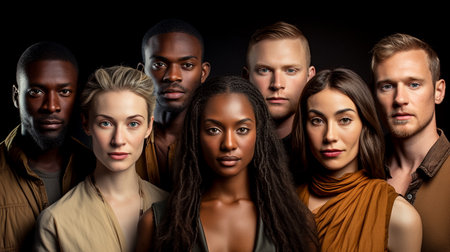 A captivating image showcasing a group of diverse young adults standing together, representing a mix of different ethnic backgrounds, emphasizing unity and modern diversity.