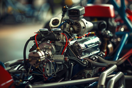 A stunning close-up reveals the complexity of a high-performance engine, highlighting metallic textures and intricate parts working together to power the machine seamlessly.