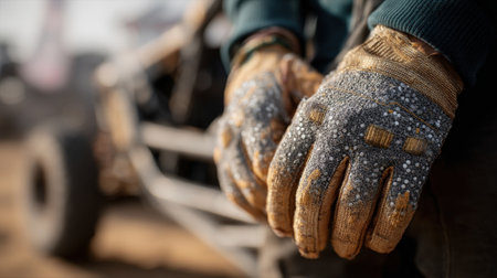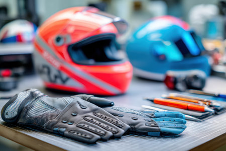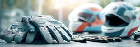 Gloves and helmets placed on a table, illustrating the pre-race preparation routine. Racing essentials highlight safety and focus before the competition starts.