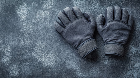 This image features a pair of gray fabric gloves laid flat on a textured surface, perfect for illustrating fitness, sports, or outdoor activities.