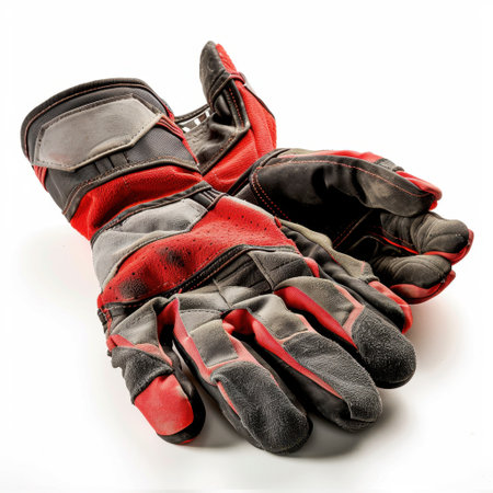 Worn Work Gloves on Vivid Red Background Weathered Protective Gear for Manual Labor AI Generative