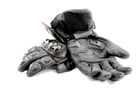 Black motorcycle gloves isolated on a white background.