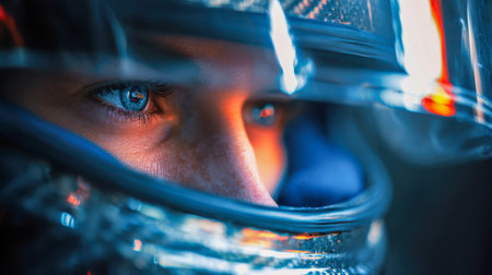 A focused glance revealed through a shimmering helmet shield, embodied fierce concentration and resolve moments before embarking on a high-stakes race.